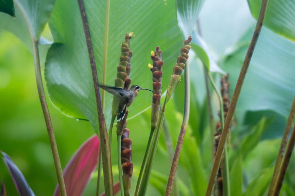 A hummingbird nested just outside my door. The light shifted throughout the day in ways I kept stopping to watch. Tarantulas living in the earth below — appearing briefly when light hit them at night, then disappearing again. Not threatening. Just existing, in their own quiet space.